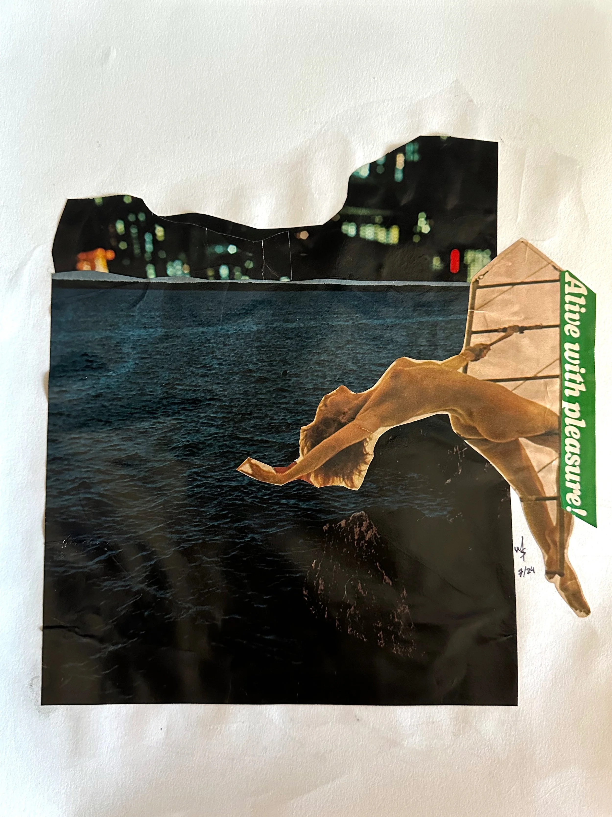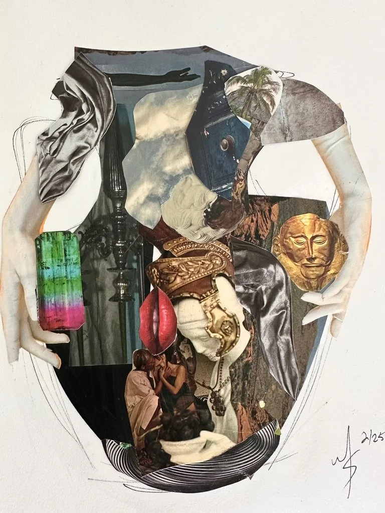 She’s been making art since she could hold scissors, using her synesthesia to craft work that’s rooted in emotion, memory, and nostalgia. Her collages—cut entirely by hand from a blend of vintage and contemporary magazines—breathe new life into forgotten imagery, offering each piece a renewed sense of story and presence.